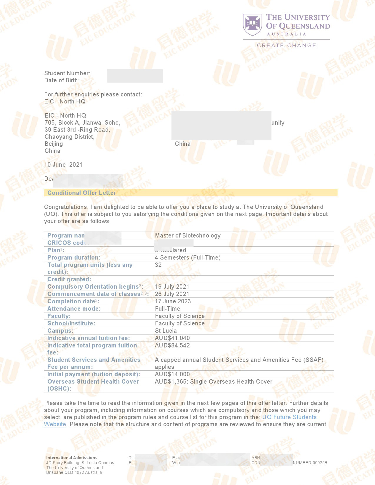 录取院校:昆士兰大学