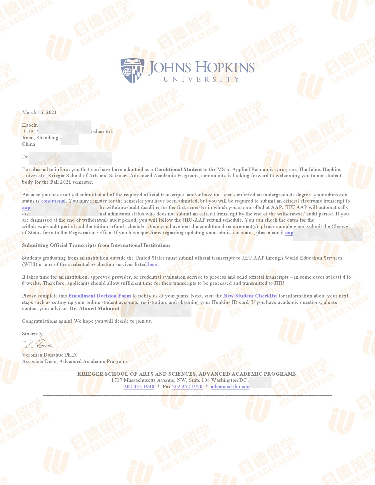 录取院校:约翰霍普金斯大学