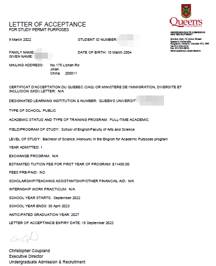 录取国家/地区:加拿大