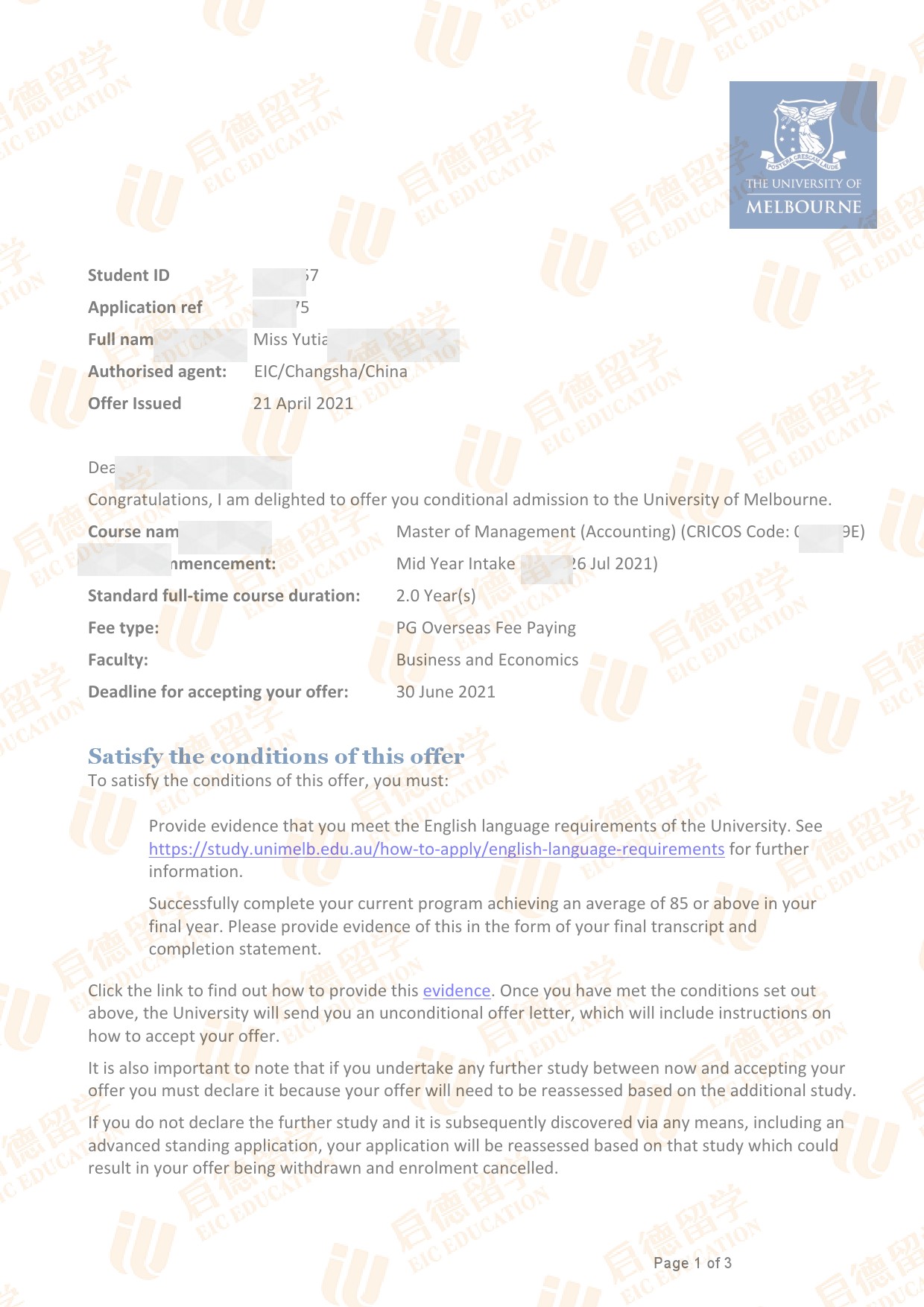 录取专业:Master of Management (Accounting)