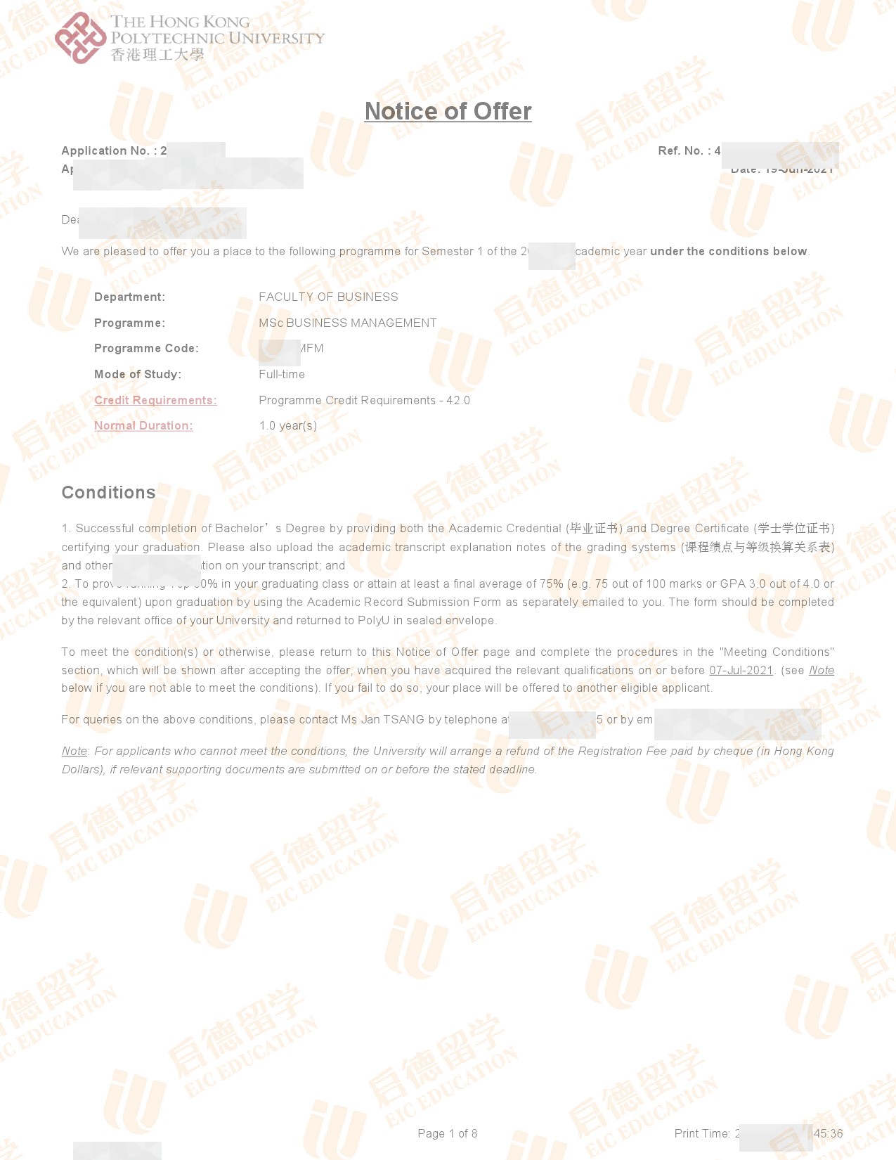 录取院校:香港理工大学