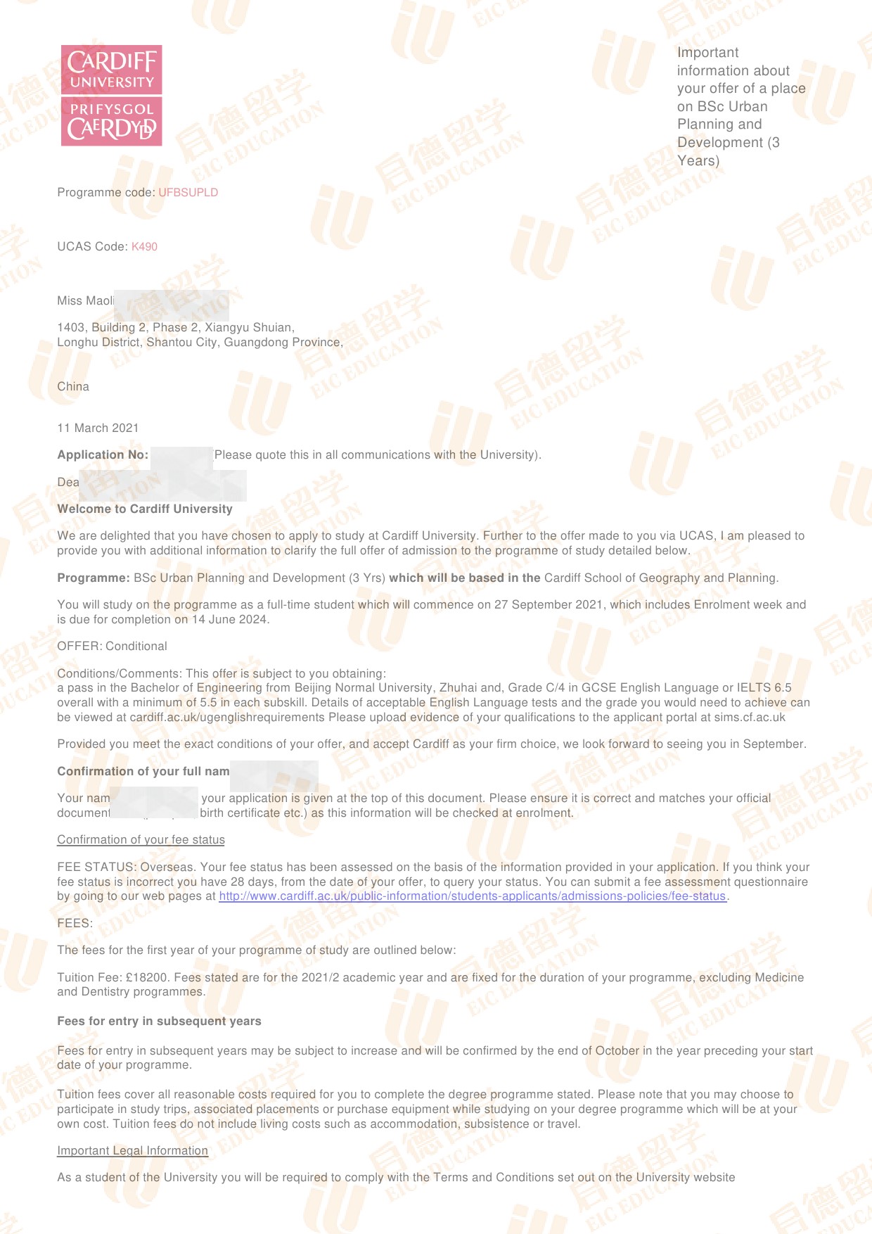 录取院校:卡迪夫大学