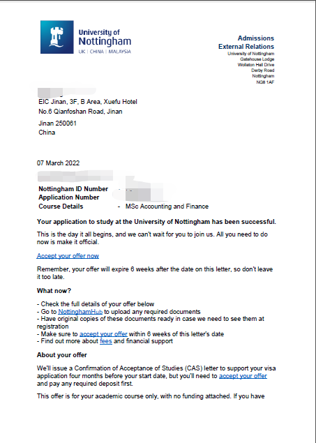 录取院校:诺丁汉大学