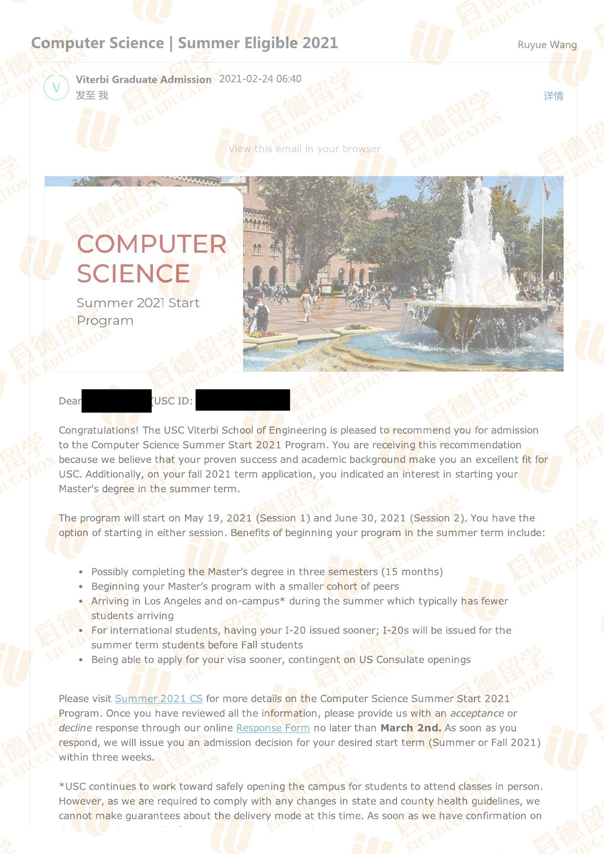 录取院校:南加州大学