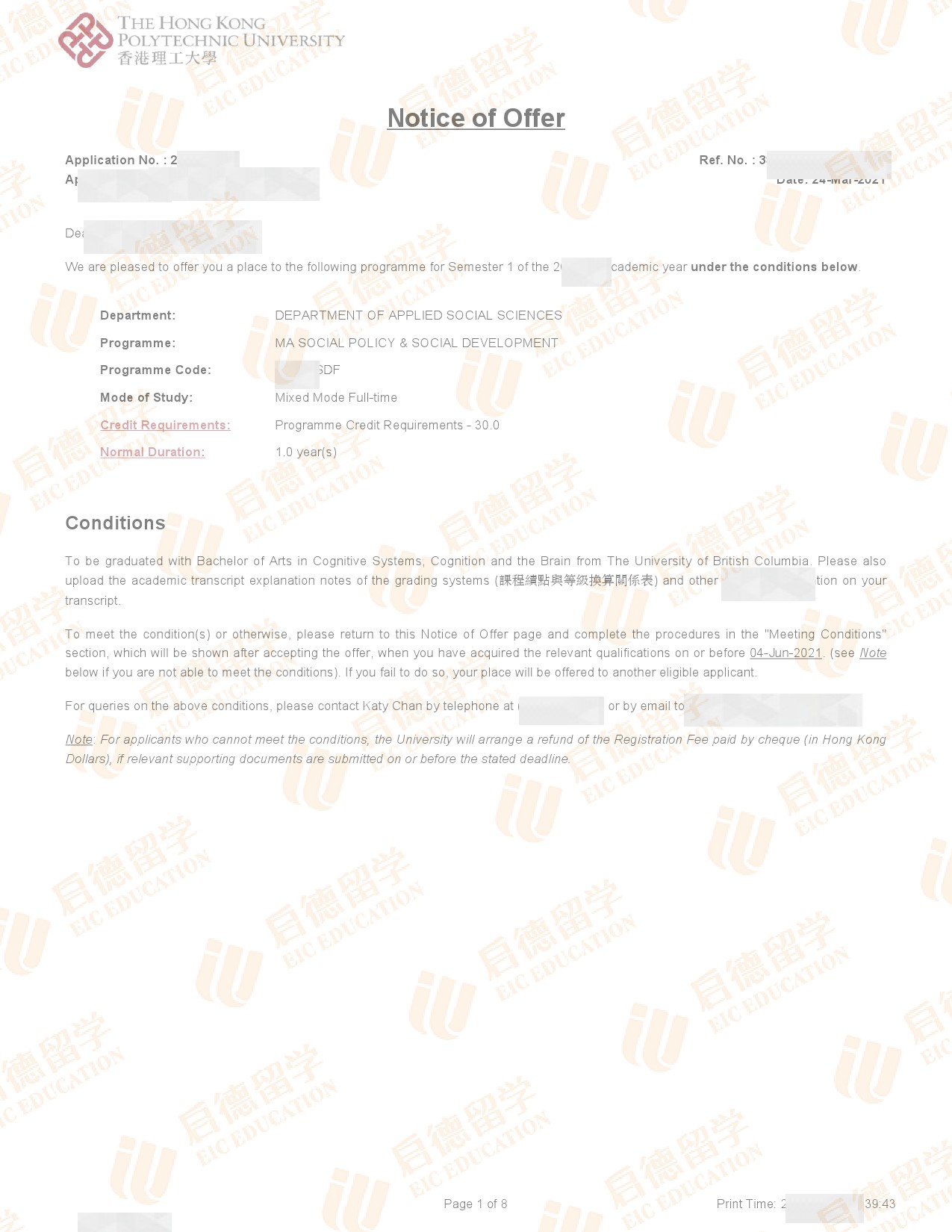 录取院校:香港理工大学