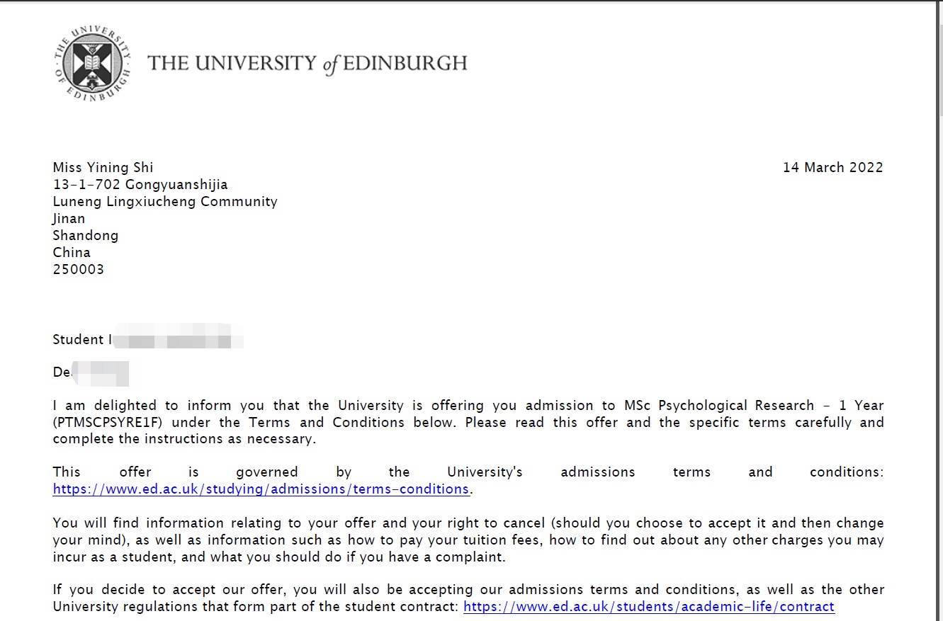 录取院校:爱丁堡大学