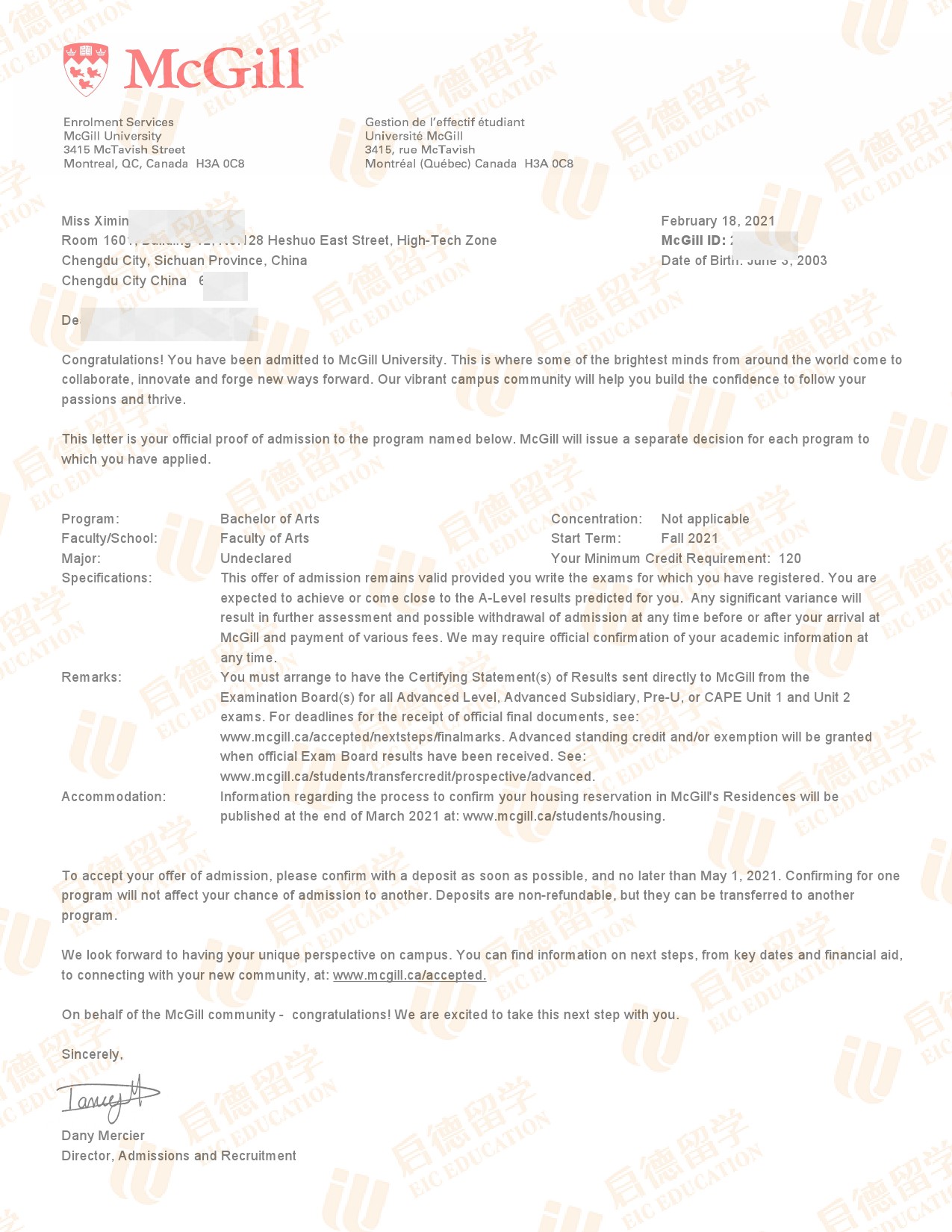 录取院校:麦吉尔大学