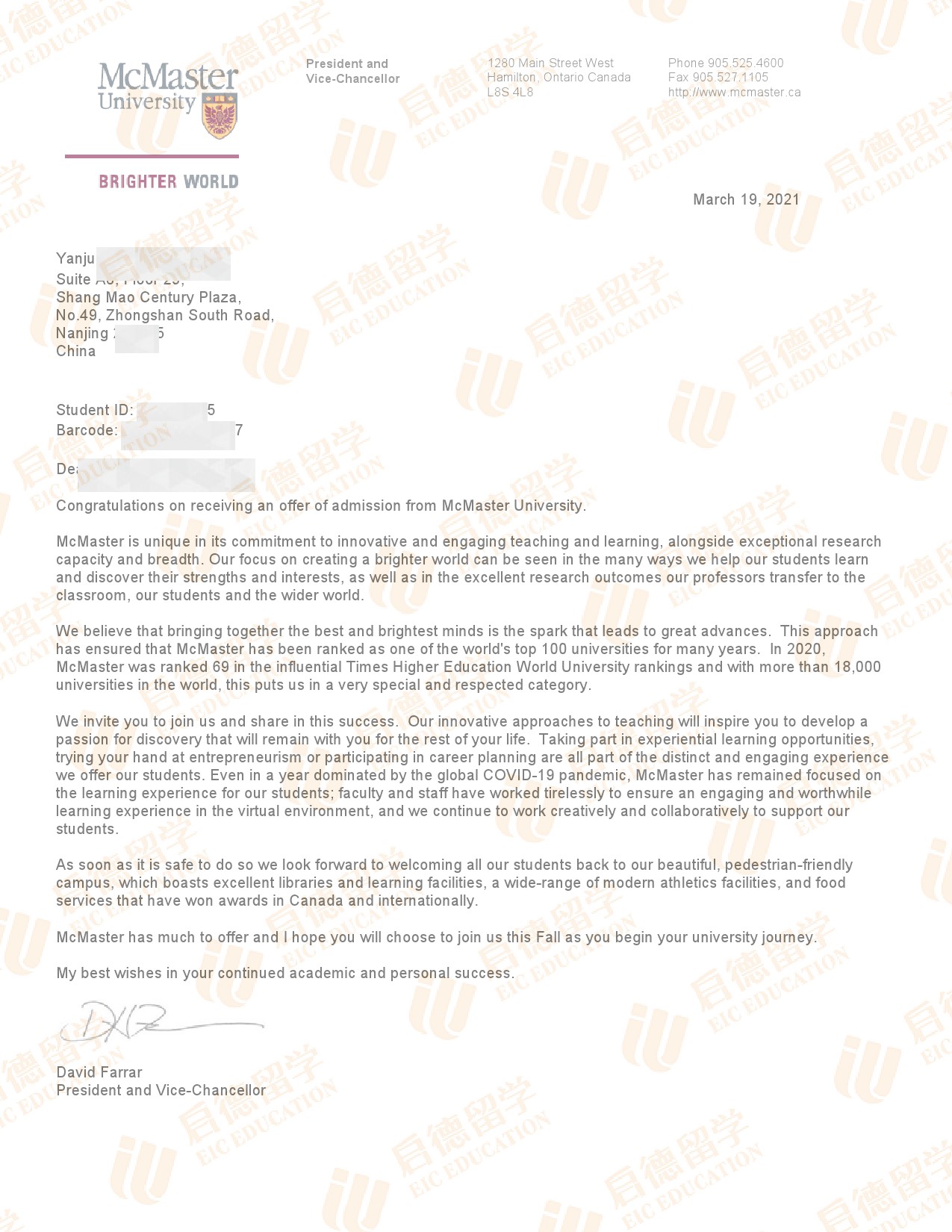 录取院校:麦克马斯特大学