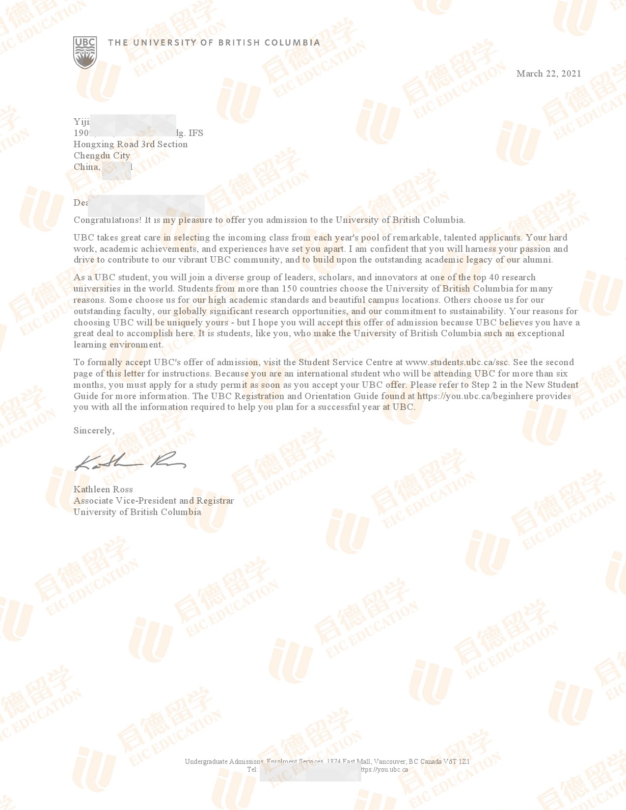 录取院校:英属哥伦比亚大学