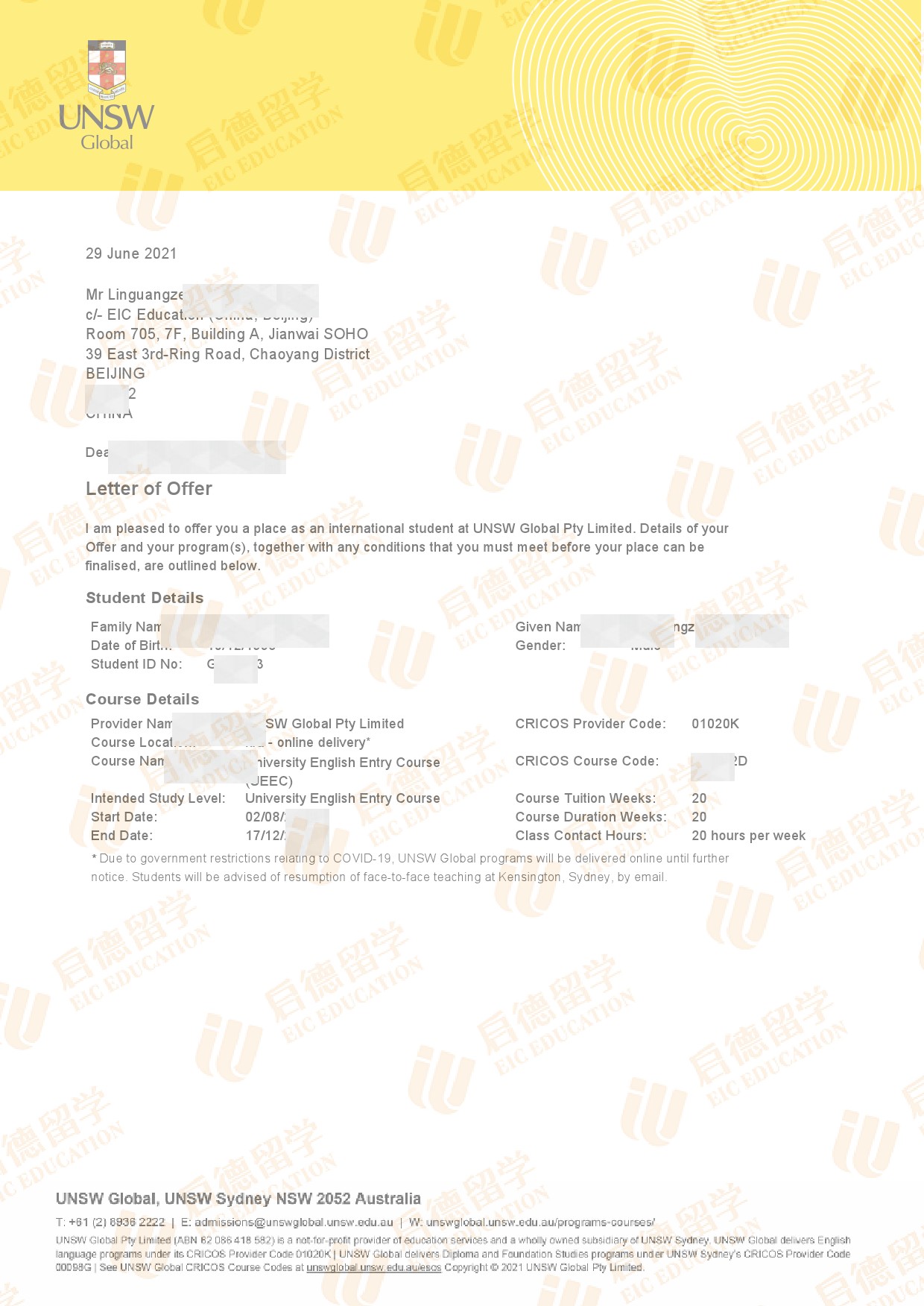 录取院校:新南威尔士大学