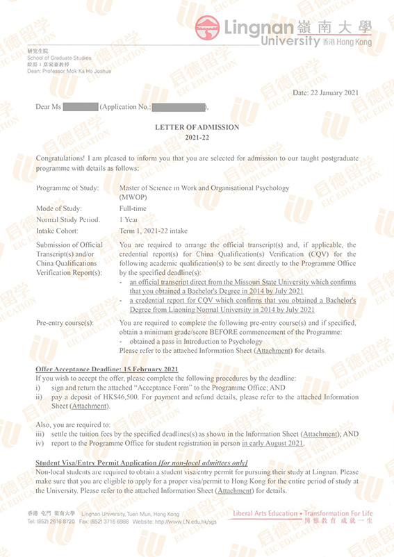录取院校:香港岭南大学