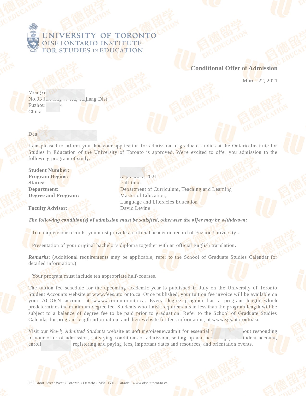 录取专业:Master of Education in Language and Literacies Education - Downtown Toronto