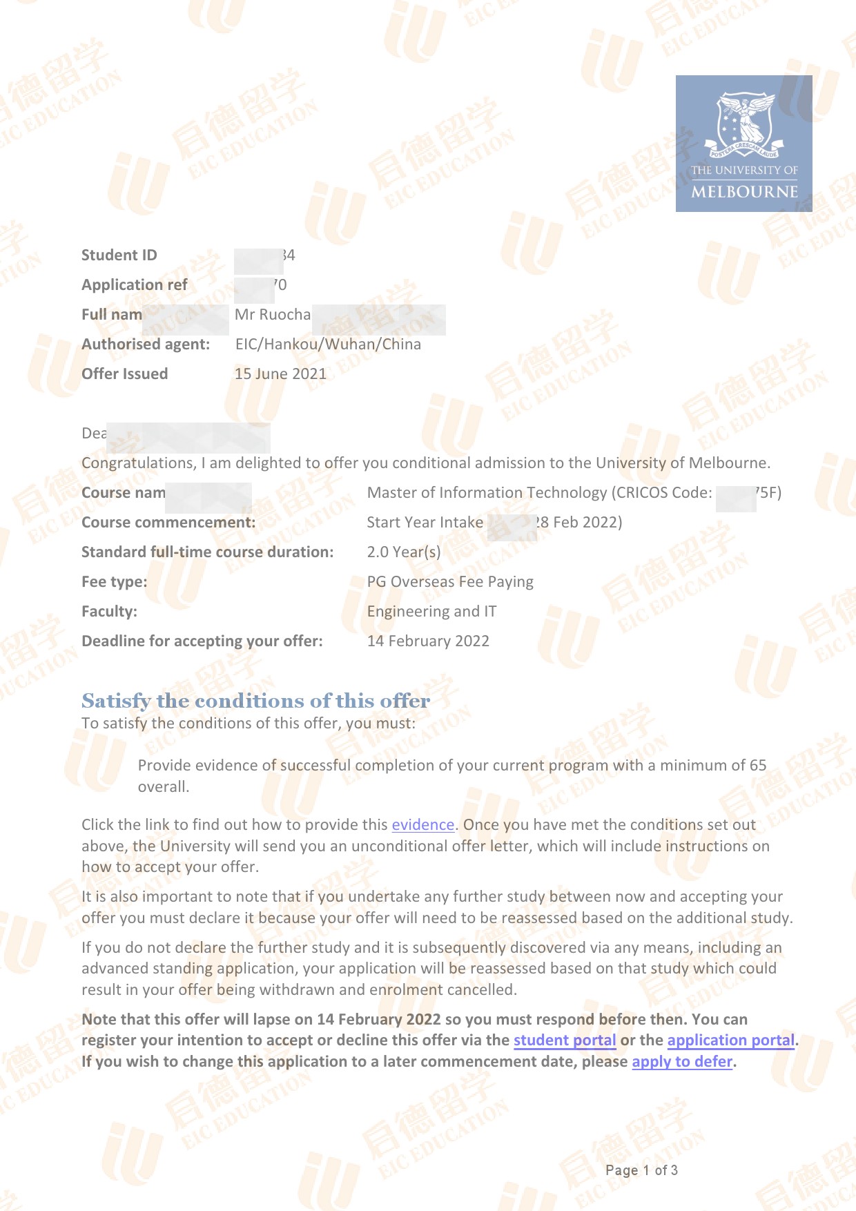 录取专业:Master of Information Technology