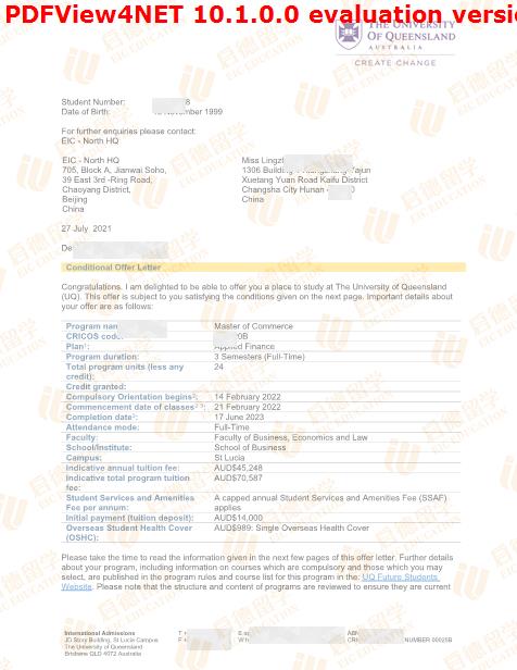 录取专业:Master of Commerce (Professional Accounting)