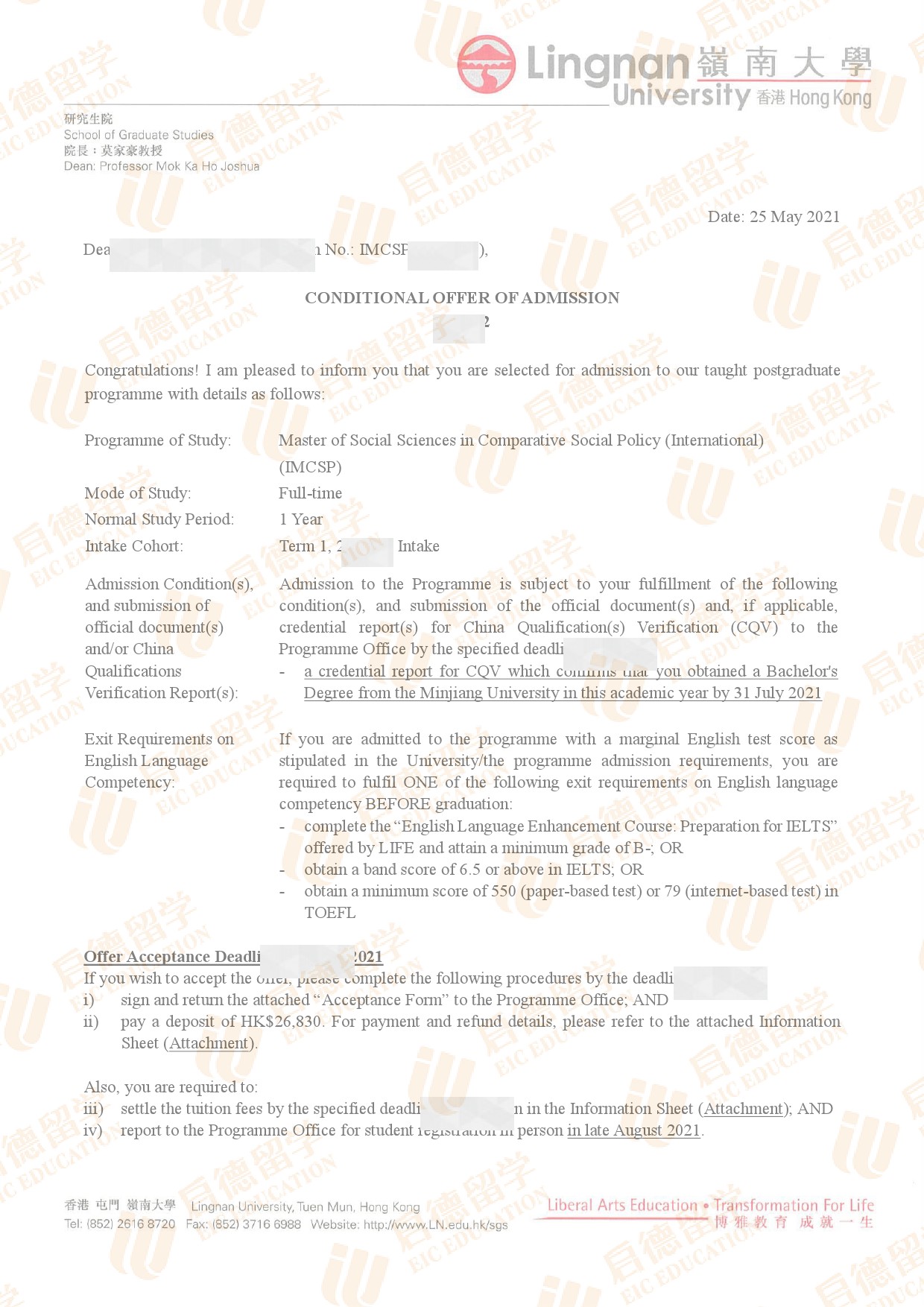录取院校:香港岭南大学
