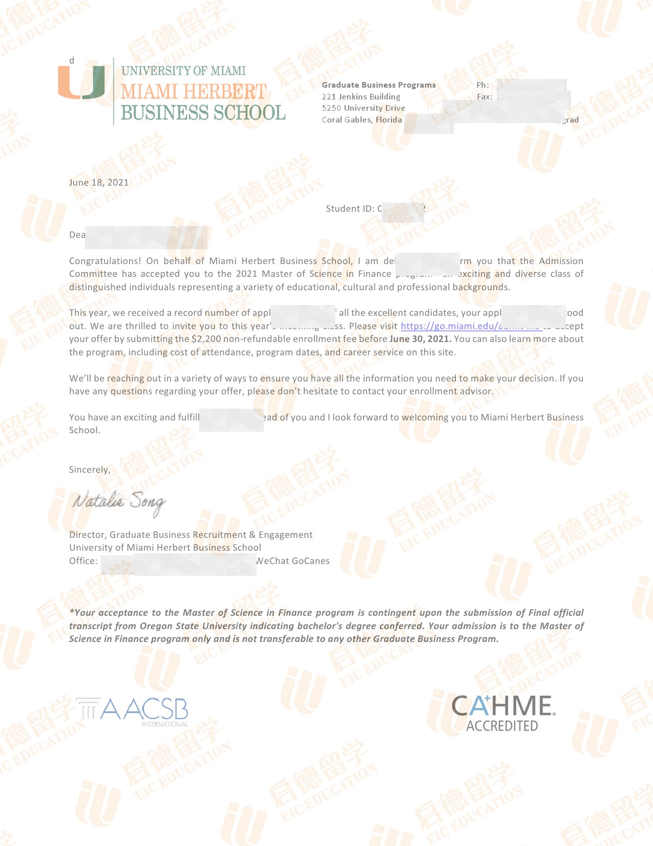 录取院校:迈阿密大学
