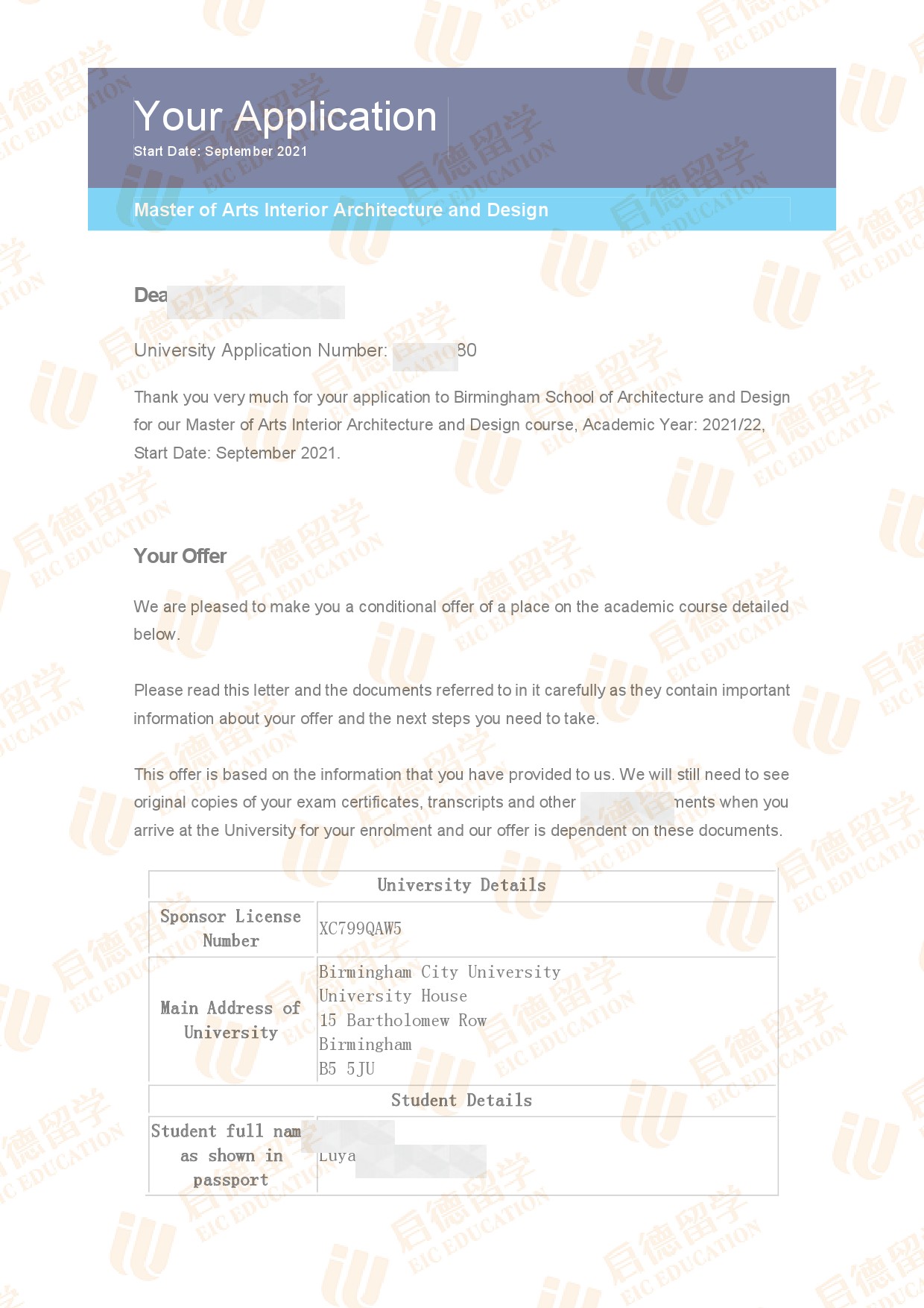 录取院校:伯明翰城市大学