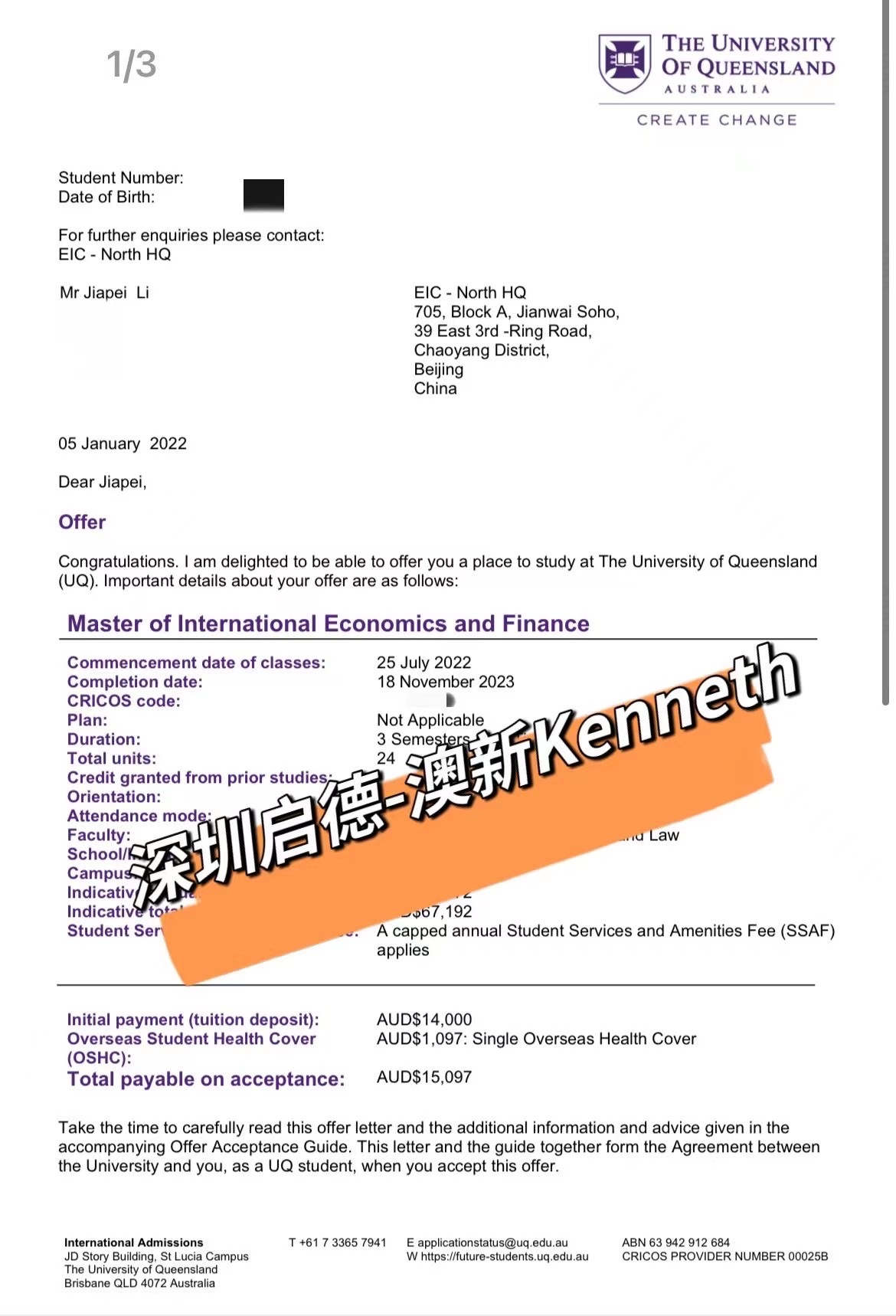 录取院校:昆士兰大学