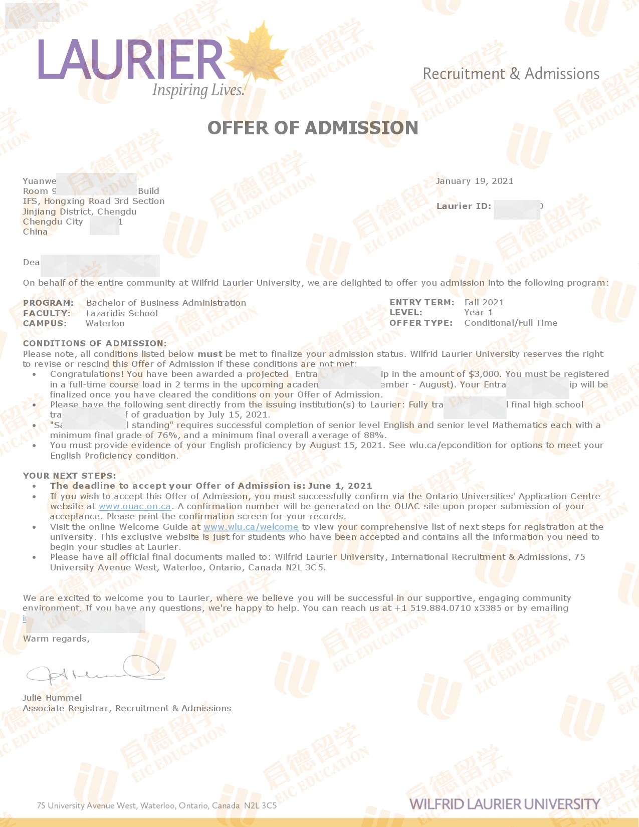 录取院校:劳里埃大学