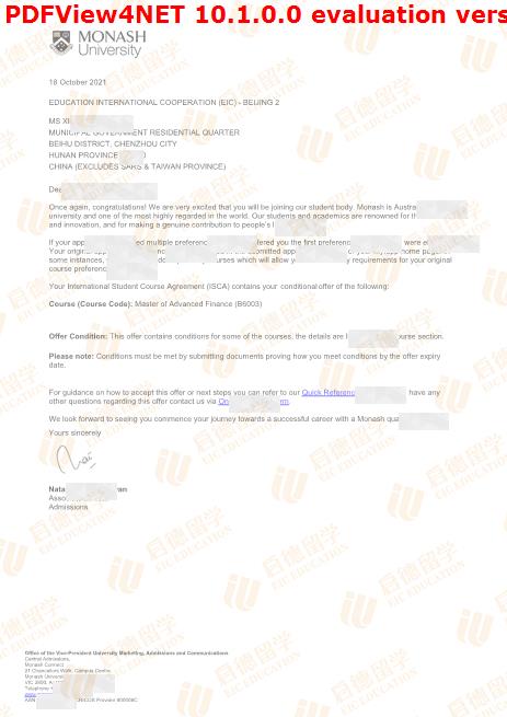 录取院校:蒙纳士大学