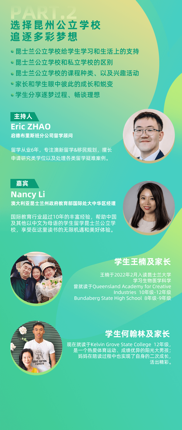 国际教育行业超过10年的丰富经验,帮助中国及其他以中文为母语的学生留学昆士兰公立学校,享受在这里读书的无限机遇和美好体验。